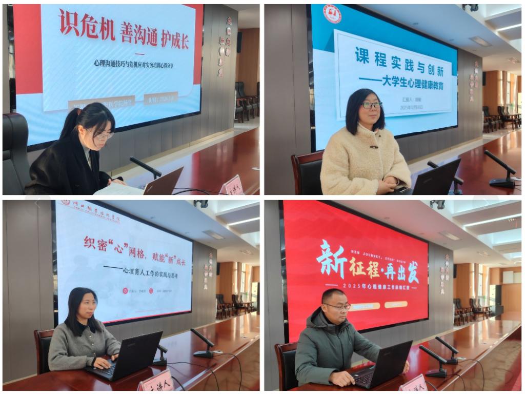 口腔医学院心理专干杨玺结合个人参加湖北省心理危机应对专题培训,从危机识别、谈心谈话、家校沟通三方面分享了学习收获与实践启示。信息工程学院学工办主任李颖前介绍了学院在心理育人工作的体系构建、特色活动与实践研究。大学生心理健康中心主任胡敏围绕理念重塑、内容重构、教学革新和评价改革四个维度,交流了心理健康教育课程的改革探索与实践成果。党委学生工作部副部长程曙文总结了2025年心理健康教育工作及取得成果,并安排了2026年重点工作。