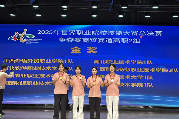 陈孝艳主动走出课堂,积极参与各类竞赛,在竞技中锤炼本领。2025年7月,她在湖北省职业院校技能大赛现代商务与管理赛道中脱颖而出。2025年8月,世界职业院校技能大赛商贸赛道开赛,她与队友凭借扎实功底与出色发挥获得金奖。