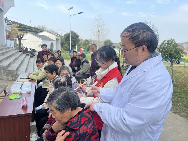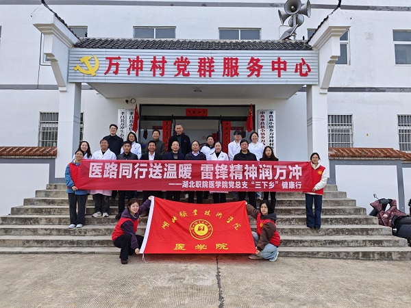 (本网讯 彭裕刚 邓彬新)3月13日,我校医学院党员教师和学生入党积极分子组成的志愿服务队,前往孝昌县小悟乡万冲村,开展了以“医路同行送温暖,雷锋精神润万冲”为主题的送医送药送健康志愿服务活动。医学院党总支书记高想清、院长陈军芳,学校党政办公室、关工委及相关人员,小悟乡党委书记徐宝传、党委宣传委员兼工会主席刘鸽子等参加活动。师生们发挥医学专业优势,为当地村民提供了细致的健康咨询和基础诊疗服务,并免费发放常用药品,将优质医疗资源送到村民“家门口”。