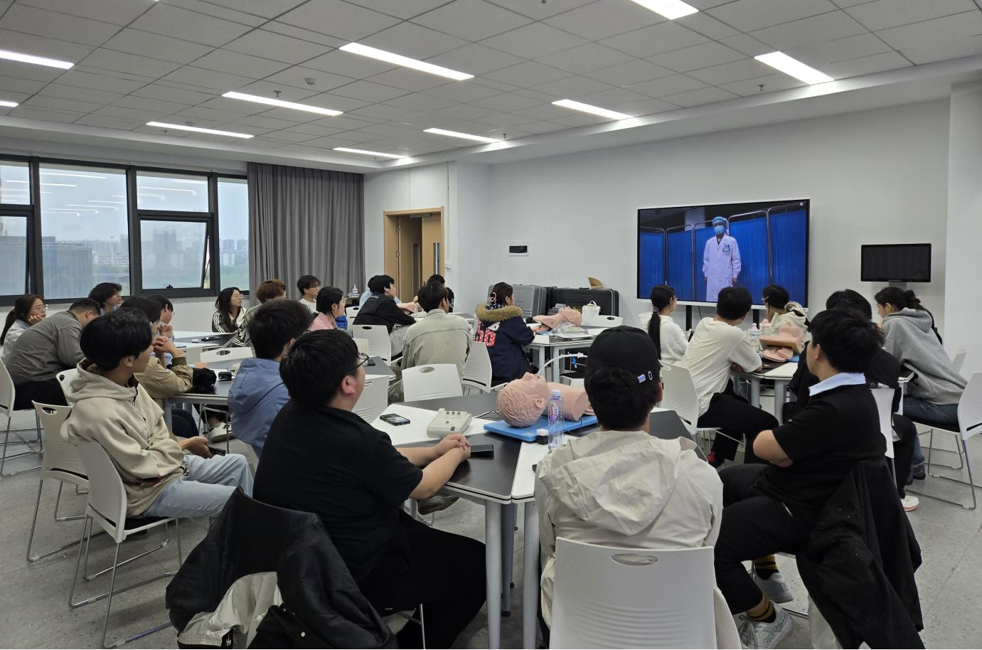 在产教融合大楼情景化急救实训室中,学生们围站在模拟人旁,认真练习心肺复苏、AED使用和创伤包扎。节奏清晰的按压声与教师的指导声交织在一起。建筑工程学院的一名学生擦着汗说:“以前只在视频里看过,现在反复实操后,才真正理解黄金救援时间的意义。这门课让我学到了能真正救命的技能,心里更有底气了。”