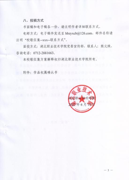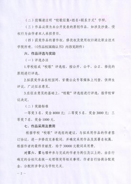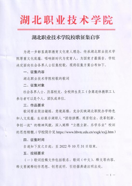 湖北职业技术学院校歌征集启事