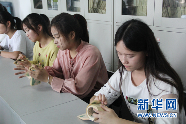 湖北职业技术学院的点钞比赛(殷艺宁 摄)