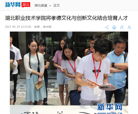 新华网武汉5月28日电(连迅 殷艺宁)位于中华孝文化名城孝感市的湖北职业技术学院,多年来坚持中华孝德文化与创新创业文化相融合的育人方略,培育出一批既有精湛技术又有道德品质的优秀人才。