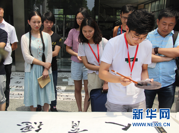 湖北职业技术学院的书法艺术表演(殷艺宁 摄)