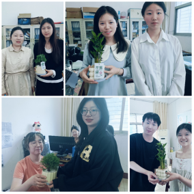 (本网讯 周小军)在五一国际劳动节来临之际,教育与艺术学院团总支学生代表开展“绿意敬师恩”主题活动,学生代表手捧大雾松、文昌竹等绿植走进办公室,将一盆盆生机盎然的植物送到辅导员手中,感谢他们日复一日的辛勤耕耘,也表达了对教育工作者的敬意与感恩。