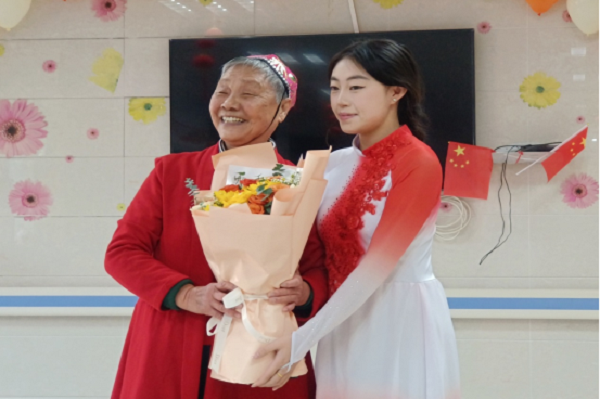 志愿者向邓少华等老同志献上鲜花。志愿者们讲解健康知识、老年慢病管理方法等,给予老人们精神上的慰藉,现场掌声不断,气氛热烈而融洽。