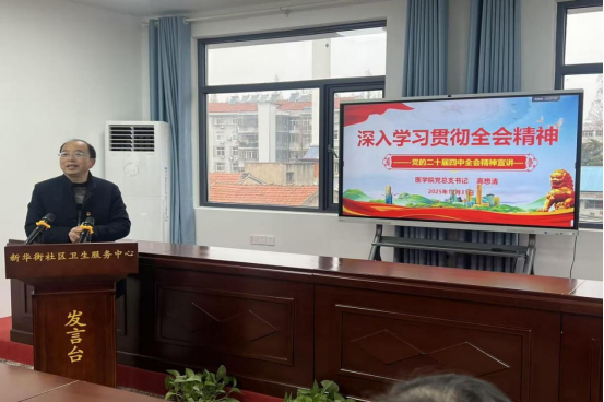 在支部共建主题党日活动环节,医学院党总支书记高想清、新华街社区卫服务中心支部书记朱胜军分别介绍了各自支部的基本情况、特色和亮点等方面工作。高想清作了党的二十届四中全会专题辅导报告。双方党员干部还分别学习相关文件精神等。