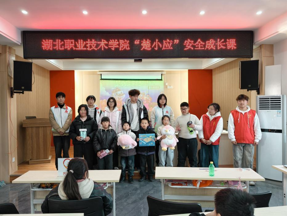 该课堂属湖北省“楚小应”安全成长课专项计划。为深化2026年寒假基层儿童关爱服务,湖北省志愿者协会联合省应急管理厅宣传处于近期共同推出该计划,通过“团队申请+市县结对”模式,在全省遴选约50支高校团队深入各地“爱心托管班”开展安全教育。经严格评审,我校信息工程学院星火志愿服务队成功入选,成为汉川市唯一承担该省级专项任务的执行队伍。