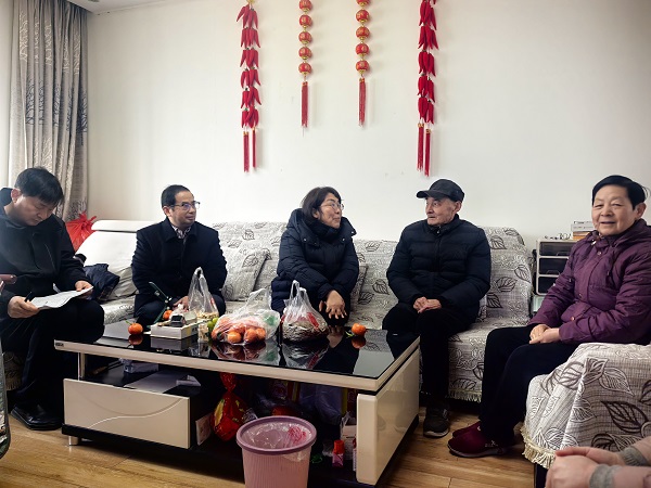 (本网讯 姜婵娟)2月10日上午,孝感市侨联党组书记、主席陈娟,党组成员、副主席厉天福一行来校慰问侨眷蔡忠福、汪训珍和陈自书、付学清夫妇。学校党委统战部部长田寿永、学校侨联主席程瑛参加活动。
