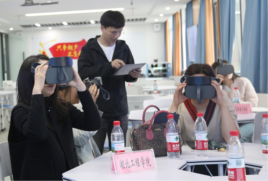 (通讯员 唐熙隆)为深入贯彻落实立德树人根本任务,扎实推进孝感市大中小学思政课一体化共同体建设,全面对标教育部等五部门《“人工智能+教育”行动计划》要求,深入实施国家教育数字化战略,推动智能技术与思政教育全要素融合、全过程贯通、全场景覆盖,4月15日,由湖北职业技术学院主办的孝感市大中小学思政课一体化集体教研活动,在虚拟仿真思政课教学体验中心顺利举行。湖北工程学院、湖北职业技术学院、湖北航天高级中学、孝感市高级技工学校、孝感市实验小学等大中小学马克思主义学院负责人、思政教学负责人、教研室主任及一线思政教师齐聚一堂,共探AI赋能思政课改革创新路径,共促一体化育人质量提质增效。