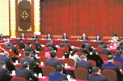 3月6日,中共中央总书记、国家主席、中央军委主席习近平看望参加全国政协十三届四次会议的医药卫生界、教育界委员,并参加联组会,听取意见和建议。中共中央政治局常委、全国政协主席汪洋参加看望和讨论。新华社记者 王晔 摄