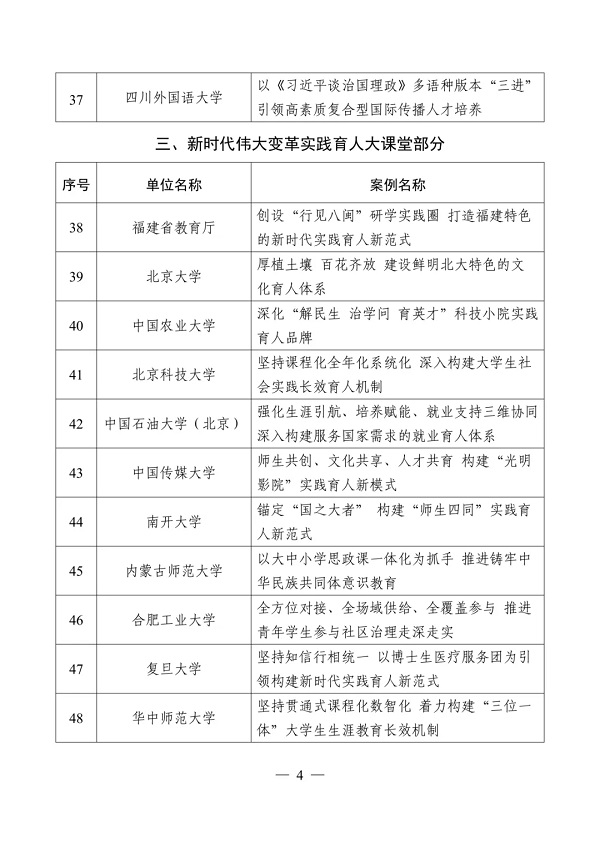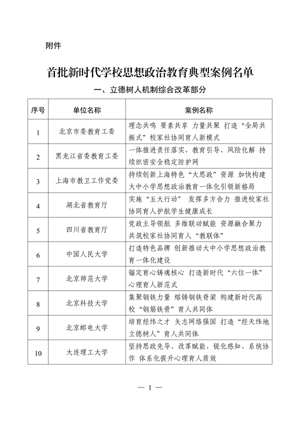 为高质量实施新时代立德树人工程,打造可复制、可推广的“菜单式、结构化”案例工具箱,教育部择优遴选各地 各校创新性强、行之有效的经验作法,组织编写了新时代学校思想政治教育典型案例。
